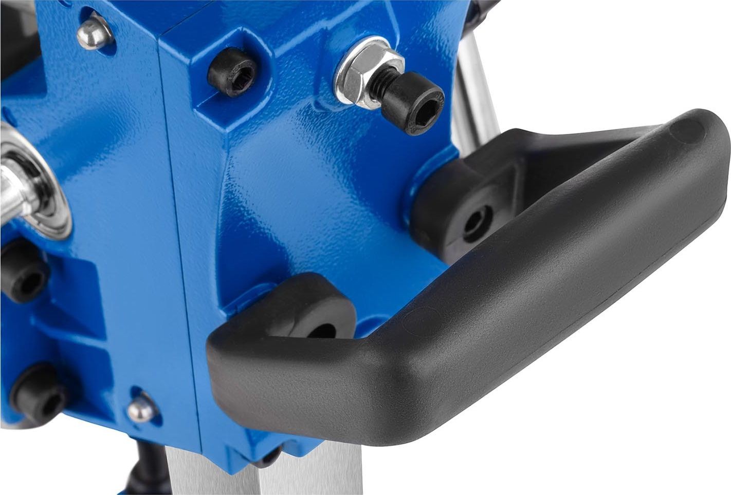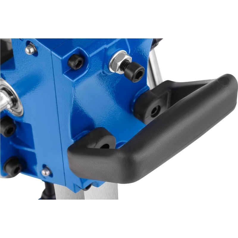 Die Bohrmaschine eignet sich auch für den Handbetrieb; dazu muss sie lediglich von der Basis abgenommen werden. Dank des im Handgriff integrierten Schalters und der speziellen Halterung am Arm ist die Bedienung des Geräts in diesem Modus komfortabel. Um den Dauerbetrieb zu erleichtern, wurde zudem eine Schalterarretierung eingebaut.