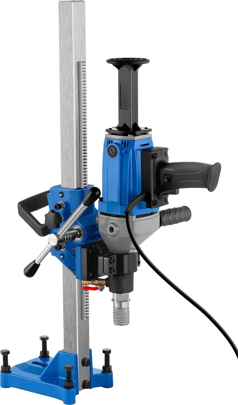- Zuverlässigkeit – die robuste Konstruktion ermöglicht Nass- und Trockenbohrungen, - Vielseitigkeit – Bohren in verschiedenen harten Materialien wie Ziegel, Beton, Stahlbeton oder Stein, - Universalität – Kompatibilität mit Diamantbohrern mit einem Durchmesser von bis zu 152 mm, - Komfort – Handbetrieb, Armstütze, Schalterarretierung - Sicherheit – integriertes PRCD-Modul.