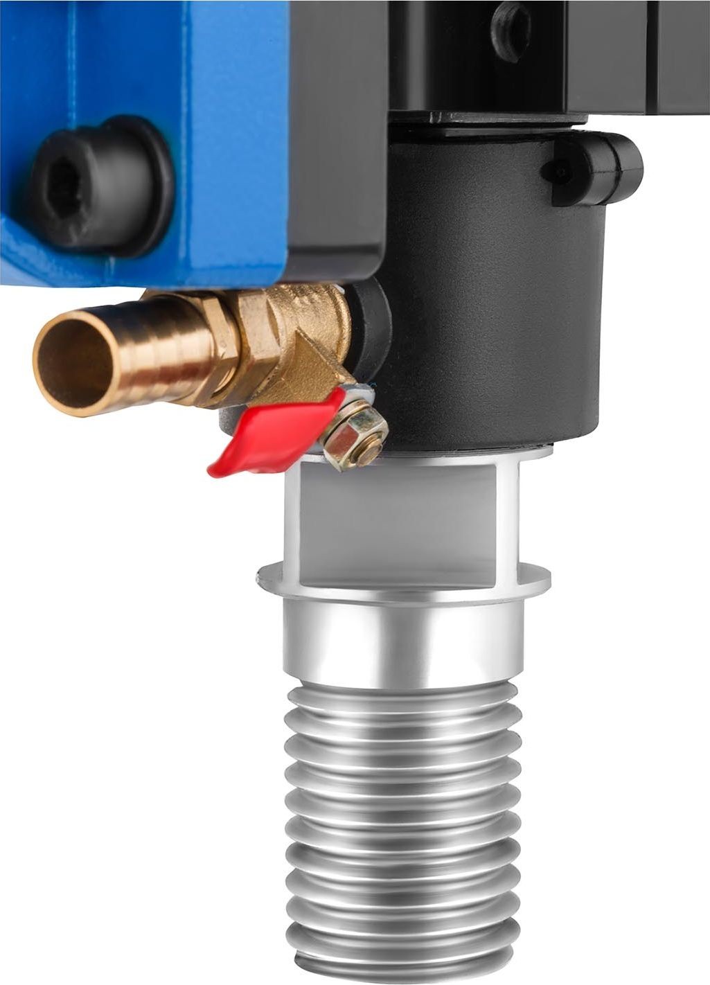 Um die Arbeitseffizienz zu steigern, sind die Bohrmaschinen mit einem speziellen Anschluss und einem Schlauch ausgestattet, die an ein externes Gerät für Nassbohrarbeiten angeschlossen werden können. Dies verlängert die Lebensdauer der Bohrkronen und verringert das Risiko einer Beschädigung des bearbeiteten Materials. Für das Gerät sind Diamantbohrkronen mit einem Durchmesser von bis zu 152 mm geeignet.