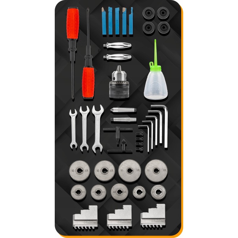 Das Gerät bietet eine einstellbare Drehzahl im Bereich von 0 bis 2500 U/min, wodurch Sie die Betriebsparameter präzise an Ihre individuellen Bedürfnisse anpassen können. Dank dieser Flexibilität eignet sich die Drehmaschine hervorragend für verschiedene Anwendungen.