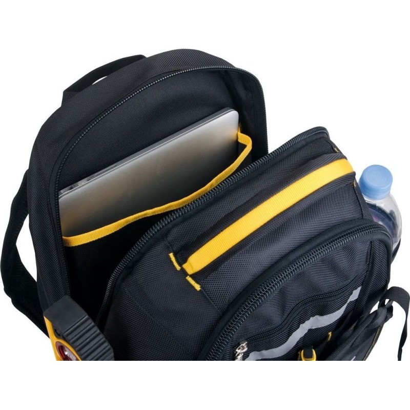 Der Rucksack hat ein Fassungsvermögen von 25 l, ist ergonomisch gestaltet und aus robustem 1680D-Nylon gefertigt. Der Rucksack selbst eignet sich ideal zum Aufbewahren und Transportieren unserer Ausrüstung. Wir können viele verschiedene Werkzeuge darin verstauen, aber vergessen Sie nicht, dass der Rucksack keine Werkzeuge enthält! Bequeme, gepolsterte Schultergurte sorgen für maximalen Komfort. Ein Stützgurt mit Schnalle sorgt zudem dafür, dass der Rucksack nicht vom Rücken rutscht. Darüber hinaus verfügt der Rucksack über ein Laptopfach, sodass man ihn auf Geschäftsreisen mitnehmen kann. Der Kunststoffboden des Rucksacks sorgt für einen stabilen Stand und schützt ihn auf nassen Oberflächen. Im gesamten Innenraum des Rucksacks befinden sich insgesamt 35 Fächer, was für Werkzeuge wirklich viel ist. Der Rucksack bietet problemlos Platz für all unsere Lieblingswerkzeuge! Der Rucksack ist in Schwarz-Gelb erhältlich.