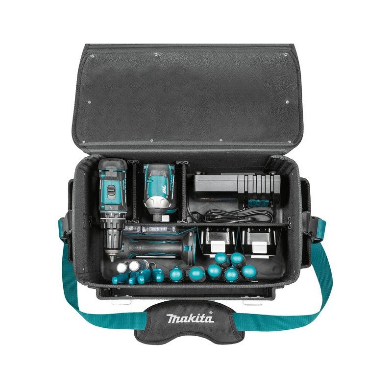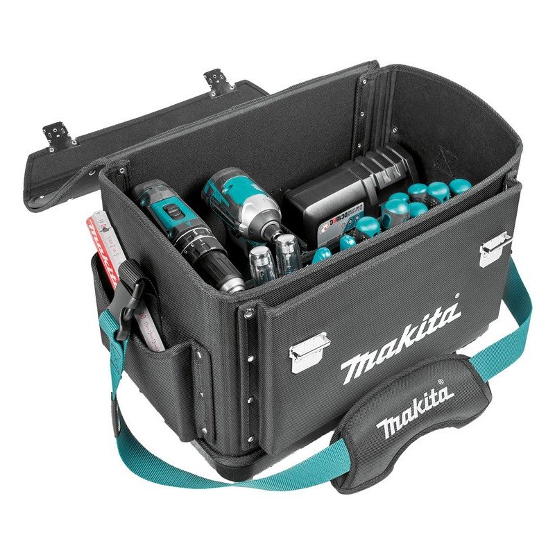 Die Werkzeugtasche Makita E-15388 wurde mit Blick auf den Komfort des Benutzers entwickelt. Der zusätzliche Gurt des Strap-Belt-Systems sorgt für bequemes Tragen, was besonders beim Transport von Werkzeugen über längere Strecken wichtig ist. So können Sie sich auf die Arbeit konzentrieren und müssen sich nicht um das unbequeme Tragen der Ausrüstung kümmern.