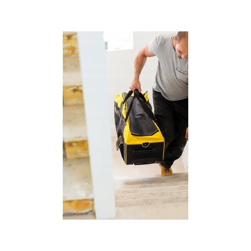 Diese Tasche wurde vom bekannten Werkzeughersteller Stanley entwickelt. Sie ist die perfekte Lösung für alle, die einen tragbaren und robusten Stauraum für ihre Werkzeuge und ihr Zubehör benötigen. Die FatMax® Rolltasche bietet Mitarbeitern Zuverlässigkeit und Komfort beim Transport ihrer Ausrüstung. Es handelt sich um eine funktionale Tasche, die Platz für zahlreiche Werkzeuge und Zubehörteile bietet, und ihr farbenfrohes Design ist nicht nur attraktiv, sondern auch auf der Baustelle gut sichtbar.