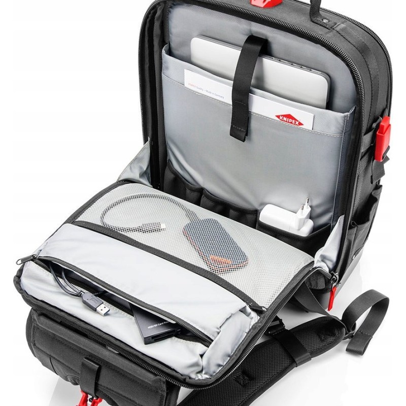 - zwei separate Innenfächer für Werkzeuge, Messgeräte, Notebook oder Tablet