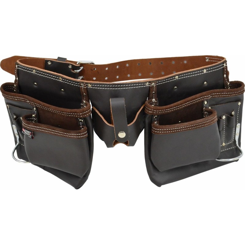 - Ausgestattet mit 11 multifunktionalen Taschen in verschiedenen Größen zur Aufbewahrung von Werkzeugen und Zubehör, darunter 1 Tasche für ein Maßband und 2 Metallhalterungen für Hammer oder Axt.