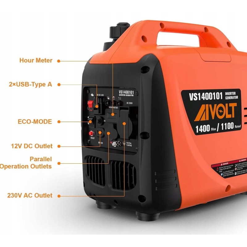 Der AIVOLT-Stromgenerator zeichnet sich durch eine Leistung von 1400 W aus, wodurch eine Vielzahl von Elektrogeräten mit Strom versorgt werden kann. Dank der Invertertechnologie liefert der Generator eine stabile Spannung, was für empfindliche elektronische Geräte entscheidend ist. Darüber hinaus erhöhen Sicherheitsfunktionen wie die automatische Abschaltung bei niedrigem Ölstand die Sicherheit und Langlebigkeit des Geräts.