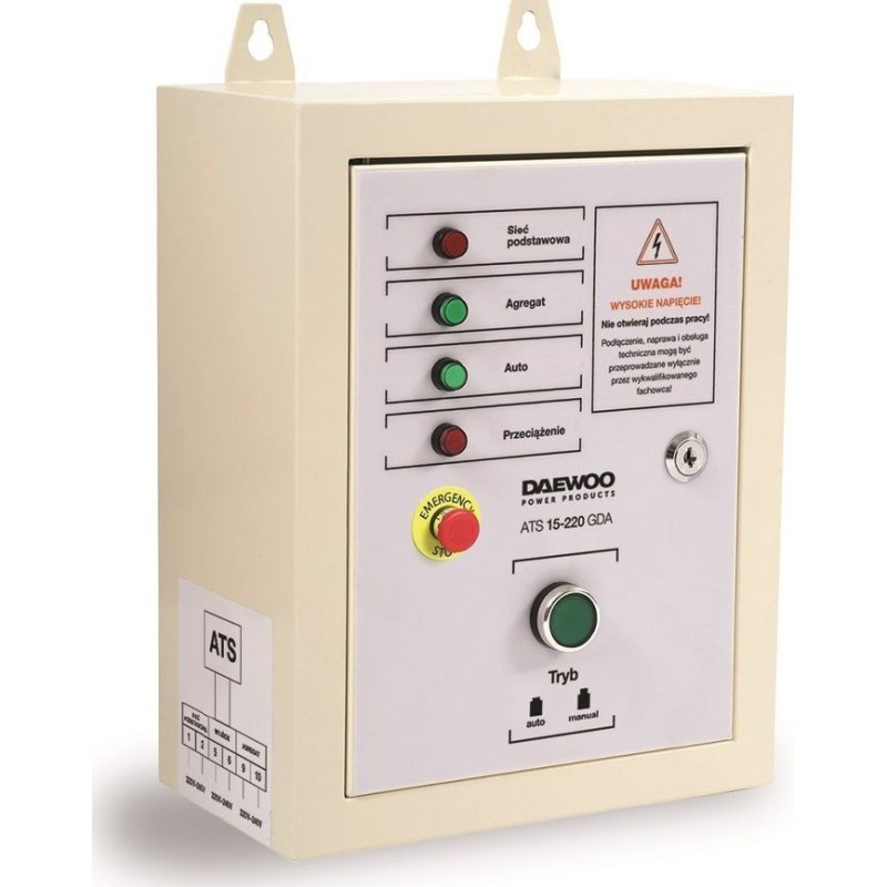 DAEWOO ATS 15-220 GDA ist ein Modul zur automatischen Steuerung des Stromaggregats DAEWOO ATS15-220GDA und ist für den Einsatz mit den Benzin-Stromaggregaten der DAEWOO GDA-Serie vorgesehen: